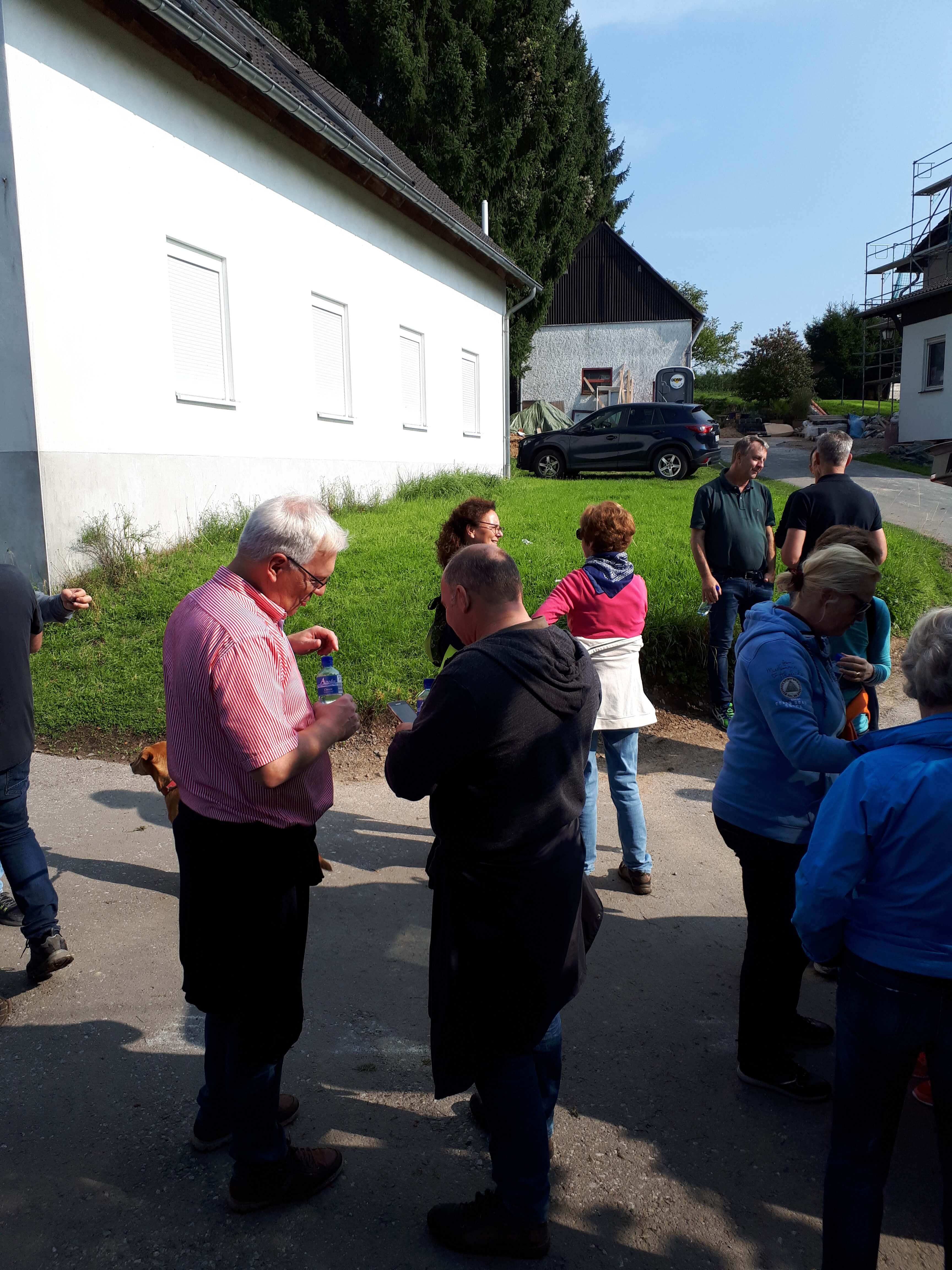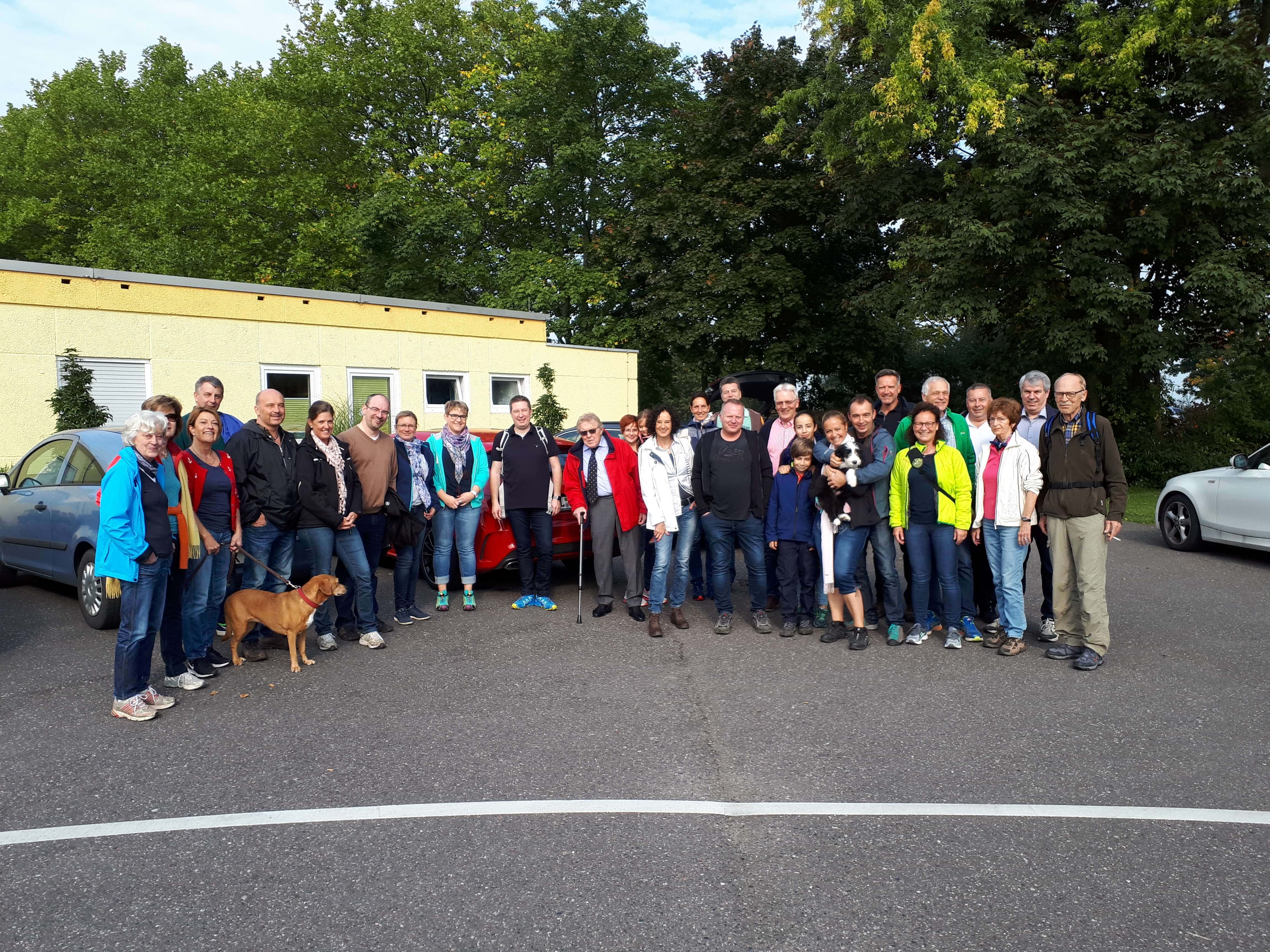 Dieses Jahr machten sich am Sonntag den 24. September unter der Organisation von Heinz Braun und Rolf Sam für die Wanderstrecke und Susanne und Mathias Fuchs für den kulinarischen Abschluss 32 wanderfreudige Senatoren, darunter der Präsident und der erste Vorsitzende der Muttergesellschaft sowie die Vorsitzende der Strunde-Pänz, 3 Kinder und 1 ½ Hunde auf den Weg die Eikamper Felder und Wälder zu erkunden. Nach der kurzen Begrüßung durch den Senatspräsidenten Ulrich Pütz ging es auf die ca. 7 km lange Strecke. Auf der Hälfte wurden die Wanderer nach einem strammen Anstieg von Susanne Fuchs mit erfrischendem Mineralwasser erwartet.