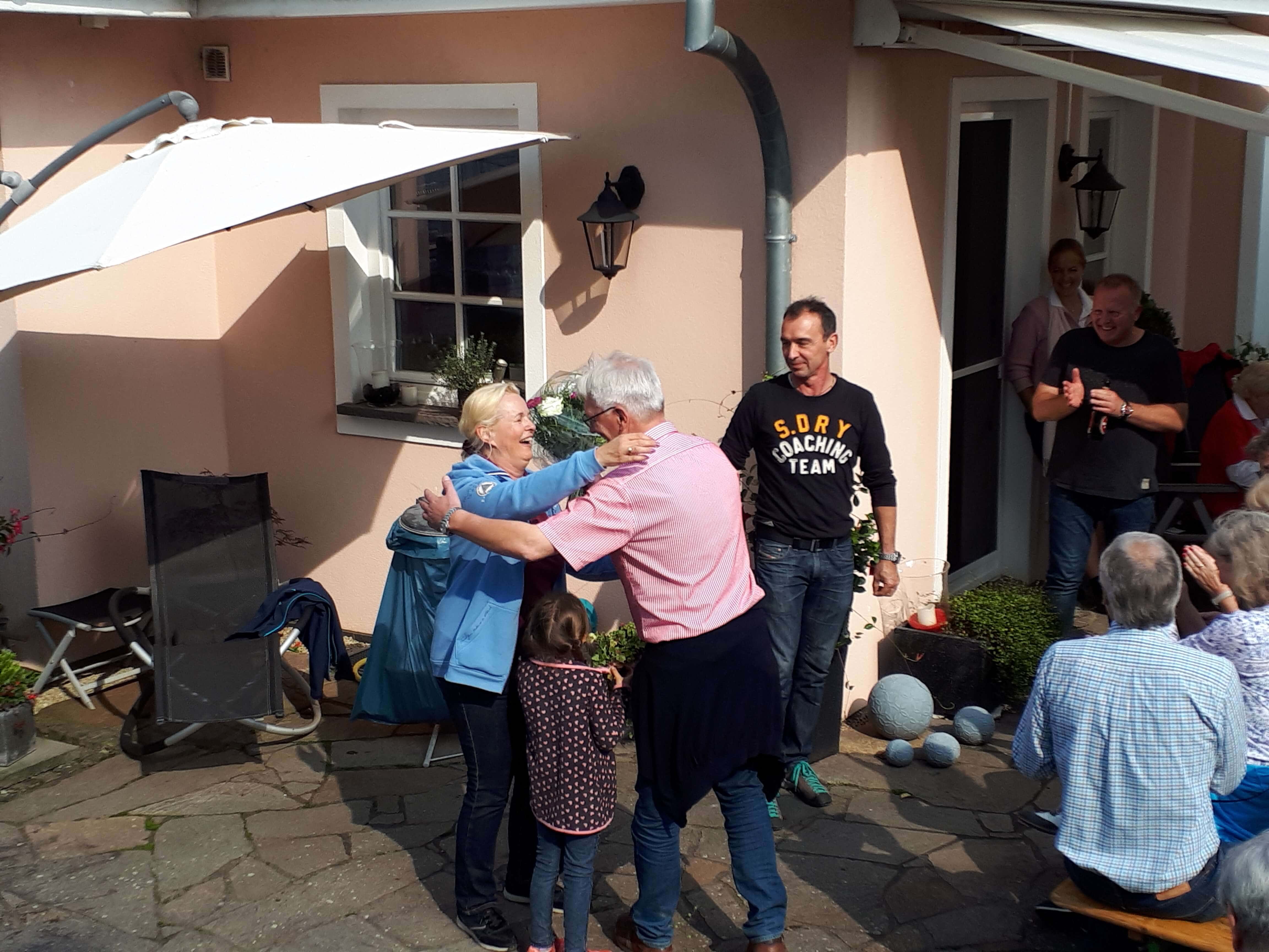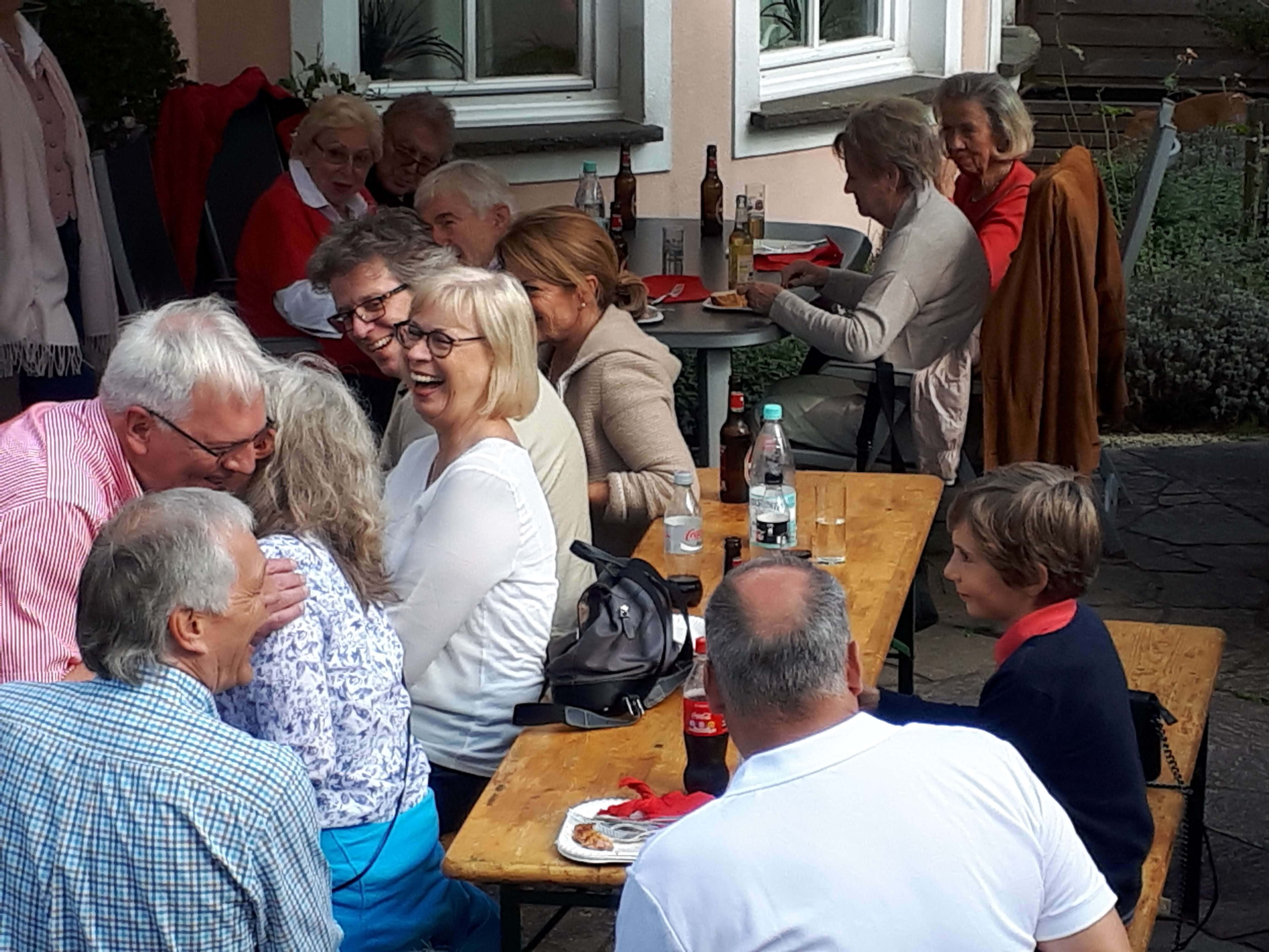 Der 2. Teil der Strecke führte uns durch das Gelände des Hochseilgartens, wobei so manch einer abgelenkt durch das, was über den Köpfen sich befand, den Blick auf den Weg verlor. Die Wandergemeinschaft beendete den Tag im Garten von Heinz Braun, wo man auch die Teilnehmer traf, die nicht gut zu Fuß waren, aber auf keinen Fall das traditionelle Grillbuffet verpassen wollten. Wie immer steuerten die Damen des Senates den ein oder anderen Salat sowie köstlichen Kuchen zum Gelingen des Nachmittages bei. Bei kühlen Getränken und leckerem Essen wurde viel erzählt, gelacht und gefeiert. Wir freuen uns aufs nächste Jahr.